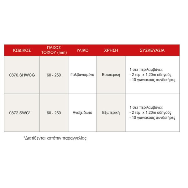 Οδηγοί γαλβανισμένοι και ανοξείδωτοι (Wall Starter Kits)