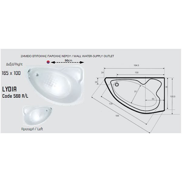 Διαστάσεις:165x100x h60 Κωδικός: 568 R/L