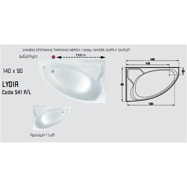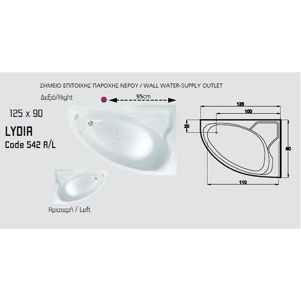 SANITEC ΑΚΡΥΛΙΚΗ ΜΠΑΝΙΕΡΑ LYDIA (R/L)