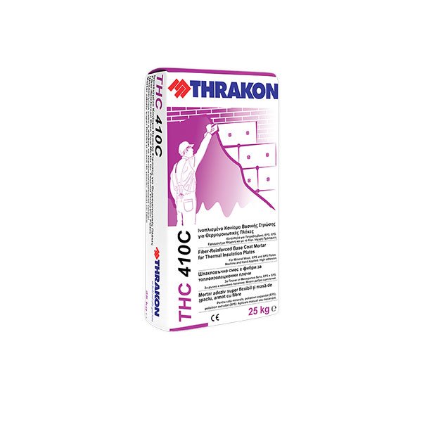 Χρησιμοποιείται κατά το σοβάτισμα θερμομονωτικών πλακών, όπως διογκωμένη πολυστερίνη (EPS), εξηλασμένη πολυστερίνη (XPS) και πετροβάμβακα. Αποτελείται από τσιμέντο, χαλαζιακή άμμο με μέγιστο κόκκο 1,5mm, ίνες πολυπροπυλενίου, ασβεστολιθικά fillers και βελτιωτικά πρόσθετα. Το προϊόν THC 410 C έχει πολύ ισχυρή πρόσφυση στις επιφάνειες των θερμομονωτικών πλακών, υψηλή ελαστικότητα, αντοχή στην ψύξη και την υγρασία. Είναι κατάλληλο για εσωτερική και εξωτερική χρήση. Ανταποκρίνεται στα ευρωπαϊκά πρότυπα ΕΝ 13499 και ΕTAG 004.
