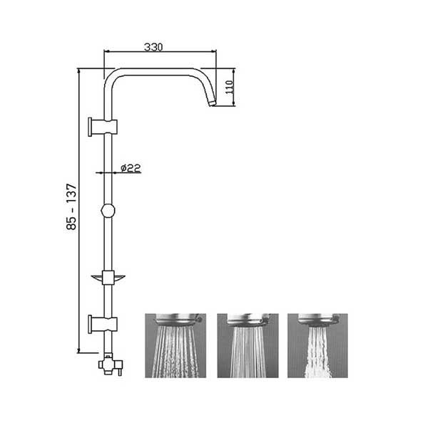 Ρυθμιζόμενο συνολικό ύψος ντουζιέρας 1005-1345mm Ορειχάλκινη στήλη ντουζιέρας Ø24 Φιλτράκια οικονομίας για εξοικονόμηση νερού εώς 40% Κώδωνας ντούς αυτοκαθαριζόμενος 200x200mm